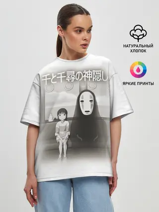 Женская футболка оверсайз / Тихиро и Каонаси в поезде