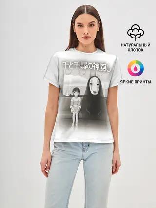 Женская базовая футболка / Тихиро и Каонаси в поезде