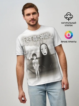 Мужская базовая футболка / Тихиро и Каонаси в поезде