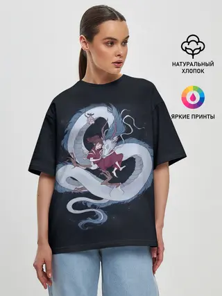 Женская футболка оверсайз / Нежность дракона и Тихиро