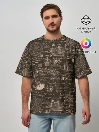 Мужская футболка оверсайз / Старая рукопись путешественник