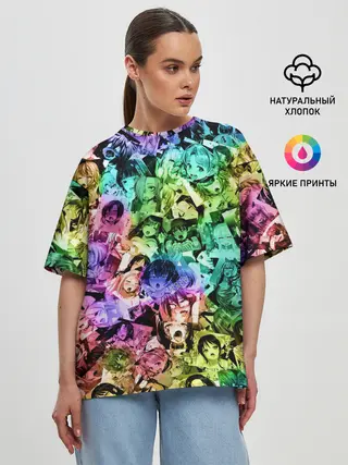 Женская футболка оверсайз / Радуга ахегао