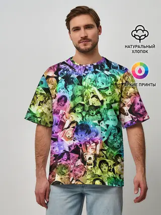 Мужская футболка оверсайз / Радуга ахегао