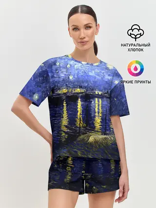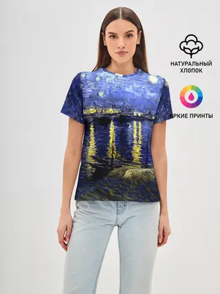 Лонгслив женский. Хлопок / Ван Гог. Звездная Ночь