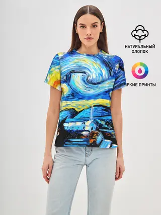 Лонгслив женский. Хлопок / Полотно ван Гога