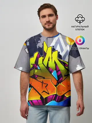Мужская футболка оверсайз / НЕОНОВОЕ ГРАФФИТИ