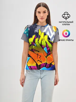 Женская базовая футболка / НЕОНОВОЕ ГРАФФИТИ