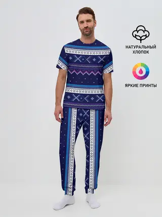 Мужская пижама с брюками / Яркий узор 2