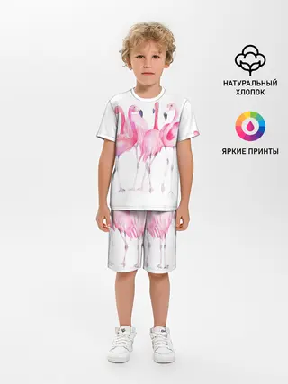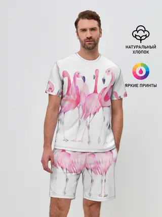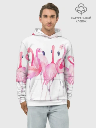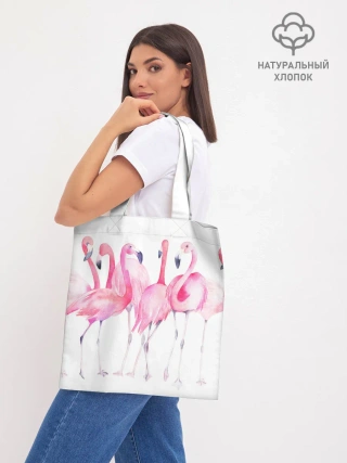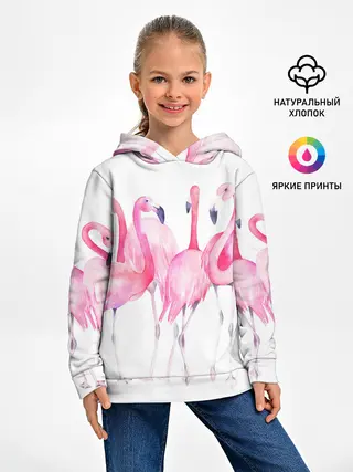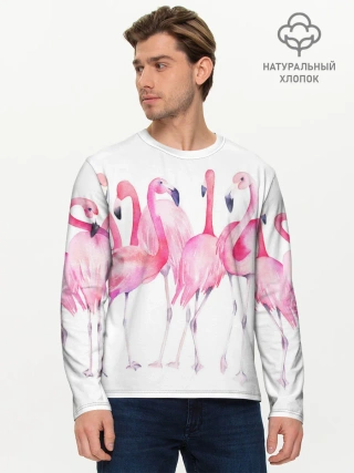 Лонгслив женский. Хлопок / Фламинго в джунглях