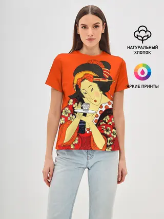 Лонгслив женский. Хлопок / Флаг Восходящего Солнца
