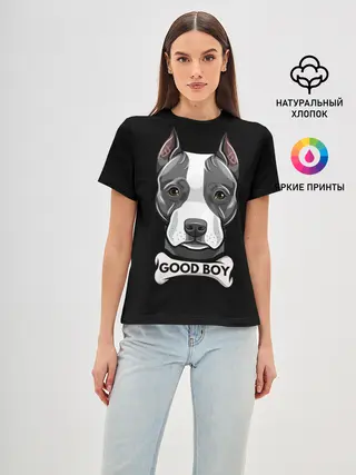 Лонгслив женский. Хлопок / Стаффордширский терьер