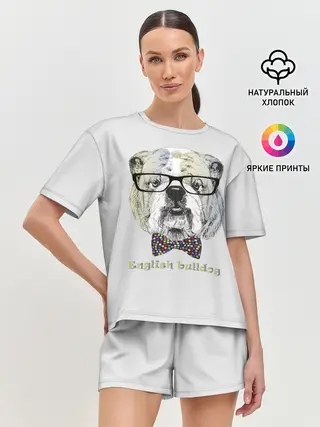 Лонгслив женский. Хлопок / Французские бульдоги в очках