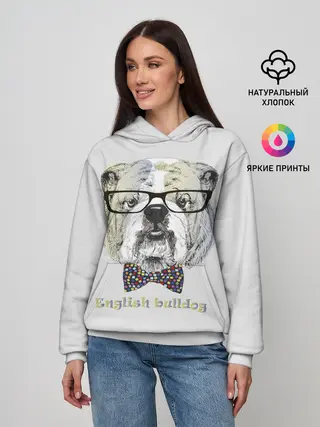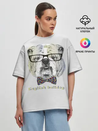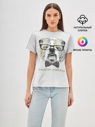 Лонгслив женский. Хлопок / Английский бульдог с короной
