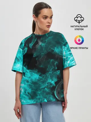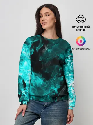 Лонгслив женский. Хлопок / ПЛАМЯ | НЕОНОВЫЙ ОГОНЬ
