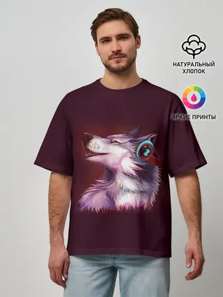Мужская футболка оверсайз / Волк
