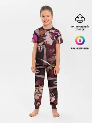 Лонгслив женский. Хлопок / Монокума на фиолетовом паттерне