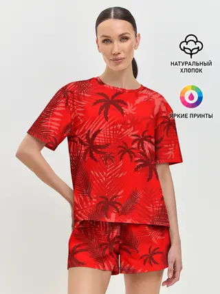Женская пижама с шортами / ПАЛЬМЫ / ТРОПИКИ / ЛЕТО