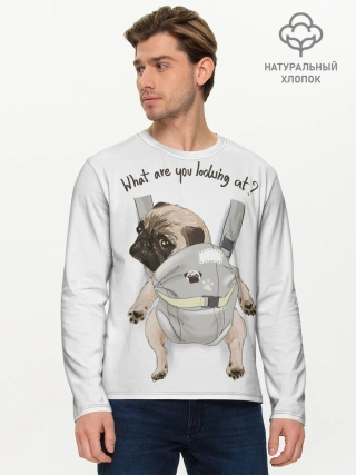 Мужской лонгслив базовый / Мопс в рюкзаке
