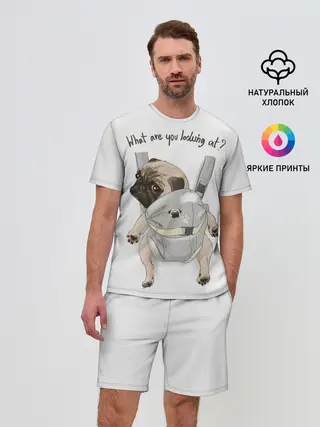 Мужской костюм с шортами / Мопс в рюкзаке