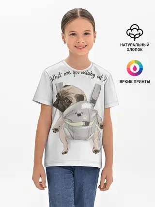 Детская базовая футболка / Мопс в рюкзаке