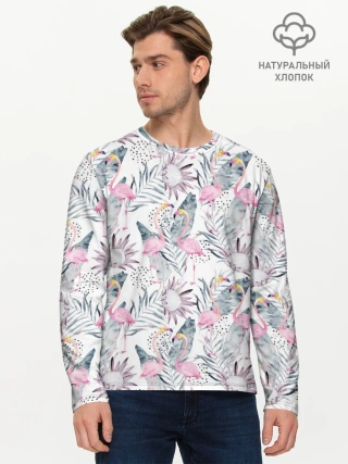 Лонгслив женский. Хлопок / Фламинго в джунглях
