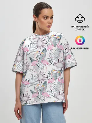 Женская футболка оверсайз / Фламинго