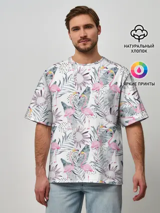 Мужская футболка оверсайз / Фламинго