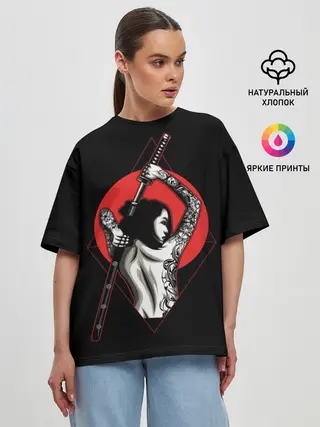 Женская футболка оверсайз / Девушка с мечом