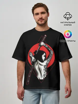 Мужская футболка оверсайз / Девушка с мечом