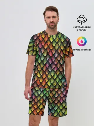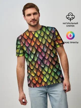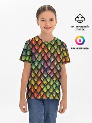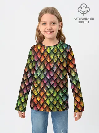 Лонгслив женский. Хлопок / Узор зеленая чешуя дракон