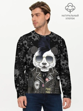 Мужской лонгслив базовый / Панда в косухе
