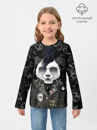 Детский лонгслив / Панда в косухе