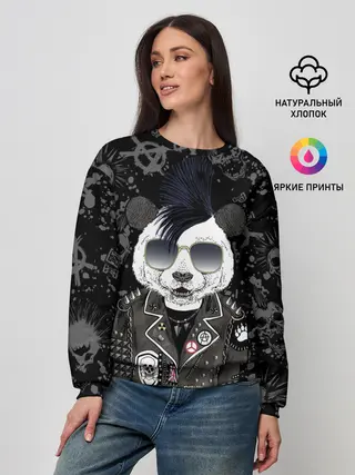 Женский свитшот / Панда в косухе