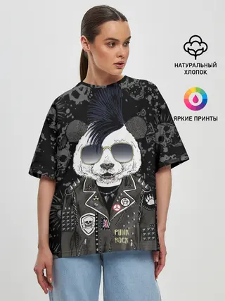 Женская футболка оверсайз / Панда в косухе