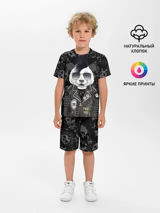 Детская пижама с шортами / Панда в косухе