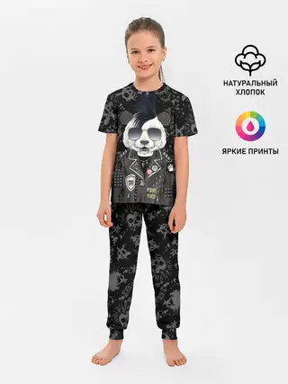 Детская пижама с брюками / Панда в косухе
