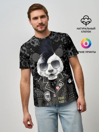 Мужская базовая футболка / Панда в косухе
