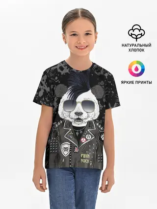 Детская базовая футболка / Панда в косухе