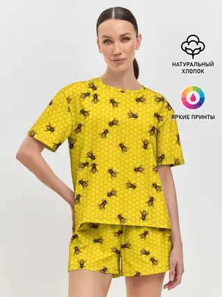 Лонгслив женский. Хлопок / Лето. Пчелы. Мед