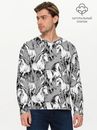Мужской лонгслив базовый / Белые лошади