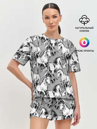 Женская пижама с шортами / Белые лошади