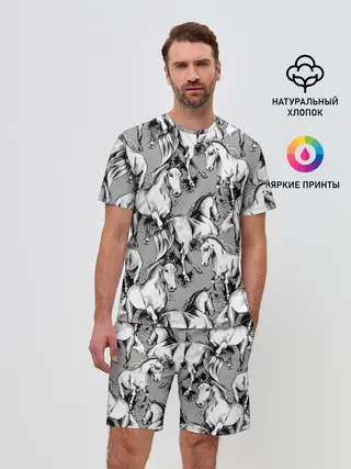 Мужской костюм с шортами / Белые лошади