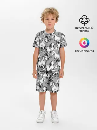 Детская пижама с шортами / Белые лошади