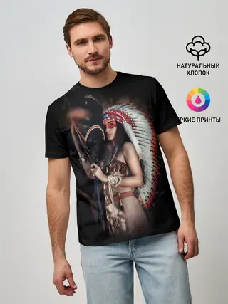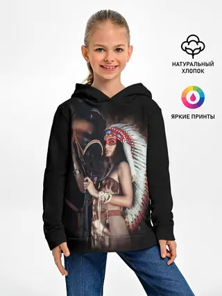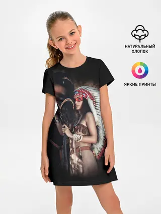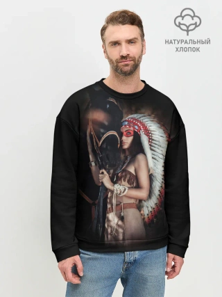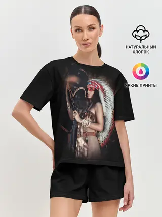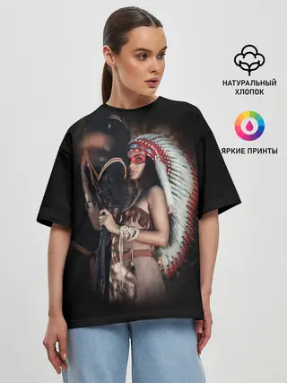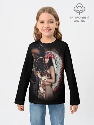 Лонгслив женский. Хлопок / Девушка с лошадью