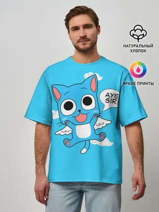 Мужская футболка оверсайз / Happy cat