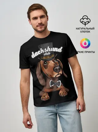 Мужская базовая футболка / Такса в цилиндре