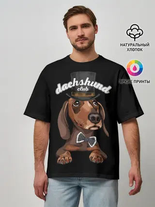 Мужская футболка оверсайз / Такса в цилиндре