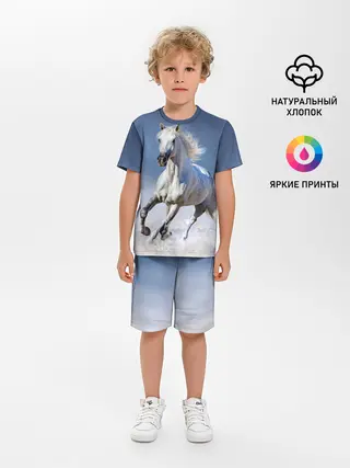 Детская пижама с шортами / Белая лошадь