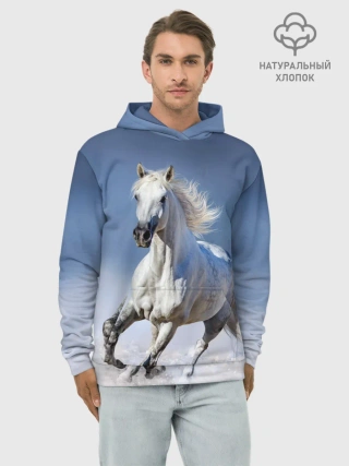 Худи мужской база хлопок / Белая лошадь