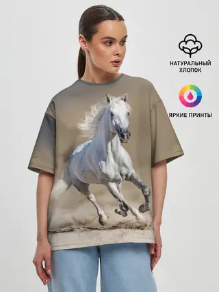 Женская футболка оверсайз / Белый конь